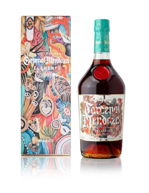 Luminoso, transparente, de caoba oscuro. De aroma redondo, limpio, elegante, vinoso. Equilibrado, persistente en boca y sin aristas. Personalidad, armonía de matices y el recuerdo profundo a pasas y ciruelas. Así es Cardenal Mendoza Clásico, un Solera Gran Reserva elaborado a partir de una selección de las mejores holandas de alquitaras, que se envejecen por el tradicional sistema de soleras y criaderas. El conjunto de botas de Cardenal Mendoza, previamente envinadas en oloroso y pedro ximénez, conforman una de las mayores bodegas de Solera Gran Reserva, garantía de la vejez y calidad de este brandy. Cardenal Mendoza, buque insignia de la bodega jerezana Sánchez Romate, es un referente internacional en el mundo de los espirituosos máss exclusivos. Su centenaria elaboración artesanal -solera fundada en 1887-, su indiscutible personalidad y la fidelidad del consumidor más exigente así lo atestiguan. Romate presenta una edición limitada llamada “Cardenal Mendoza Elements Edition”. Nadie mejor que Carmen Garcia Huerta con su visión elegante, colorista, y barroca para ilustrar e interpretar los elementos naturales que mejor evocan una copa de este brandy: café, miel, vainilla, roble, uva pasa… En su desarrollo, ha primado la integración de los elementos tanto en la etiqueta como en el estuche, creando una atmósfera selvática y colorista. Esta edición limitada es un sincero reconocimiento a nuestros consumidores, que seguramente no ponen ni números ni nombres, pero si lo disfrutan cada vez que lo toman.ENVEJECIMIENTO EN BOTA : Media 15 años