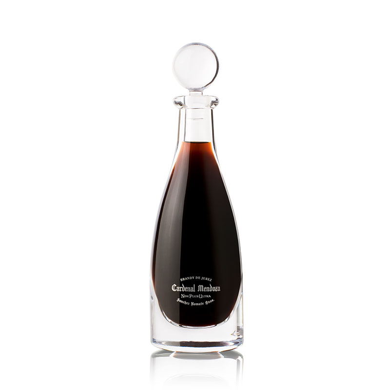 En los años 1970, poco antes del bicentenario de Sánchez Romate Hermanos, se reservaron 40 botas de Cardenal Mendoza para conmemorar la efeméride. A partir de esta limitada guarda vio la luz Non Plus Ultra, un brandy inigualable de color caoba muy oscuro, reluciente y excitante a la vez. Su aroma, de límpida distinción y trazas de pasas secas y ciruelas, remite al vino oloroso viejo. Seco y delicado al paladar, su gusto templado, persistente y muy suave posee matices de nuez moscada y naranja seca. En suma, un auténtico privilegio que atesora la historia de la bodega en una exclusiva presentación.VOLUMEN : 50cl