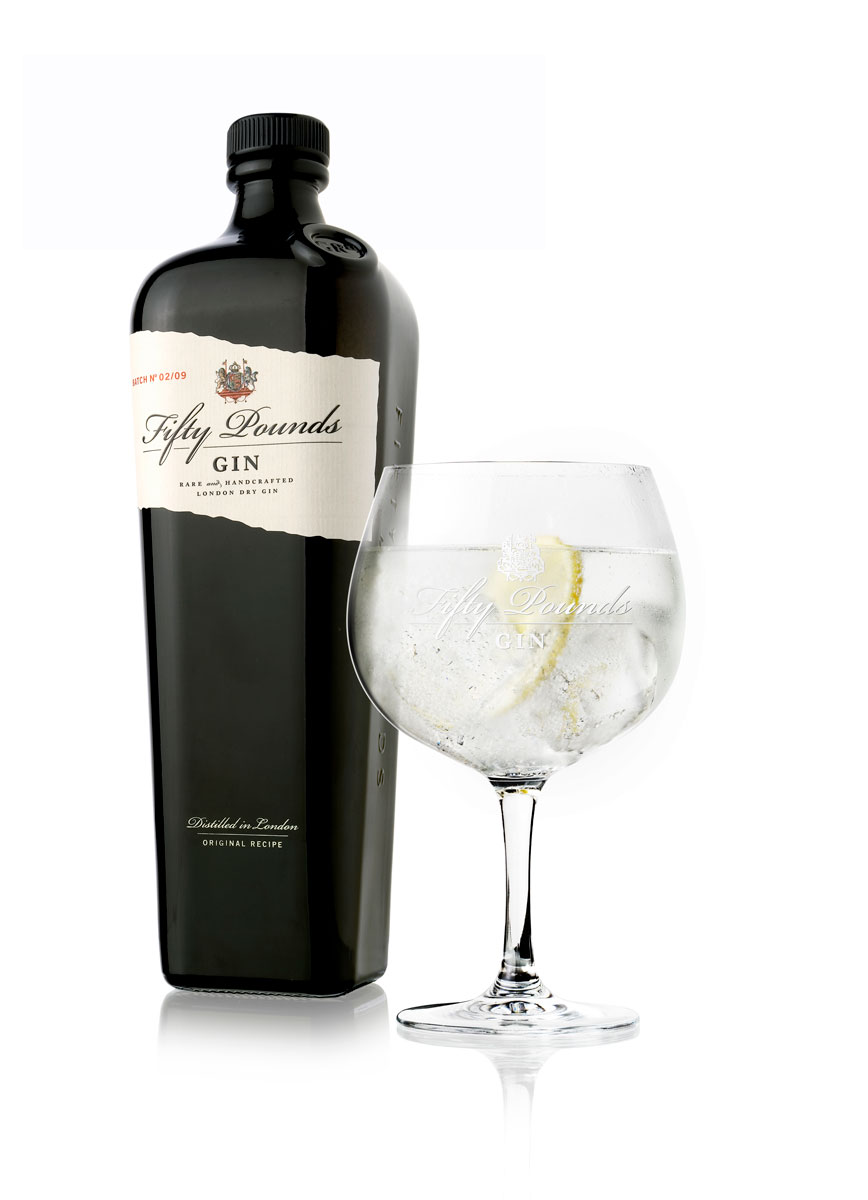 Su receta se ha mantenido oculta e inédita durante varias generaciones de una familia de destiladores de Londres. Su nombre se debe a que en 1736 el rey Jorge II de Inglaterra impuso una tasa anual de 50 libras (Fifty Pounds) para regular la destilación de ginebra: sólo dos destiladores pagaron ese canon tan desorbitado para la época. En la receta combinan once elementos botánicos, entre los que destacan bayas de los Montes de Croacia, semillas de cilantro de Oriente Medio, grano del paraíso del Golfo de Guinea, piel de limón y naranja de España, Savory de Francia, angélica, raíz de regaliz y otros tres componentes absolutamente secretos.NOTA DE CATA: