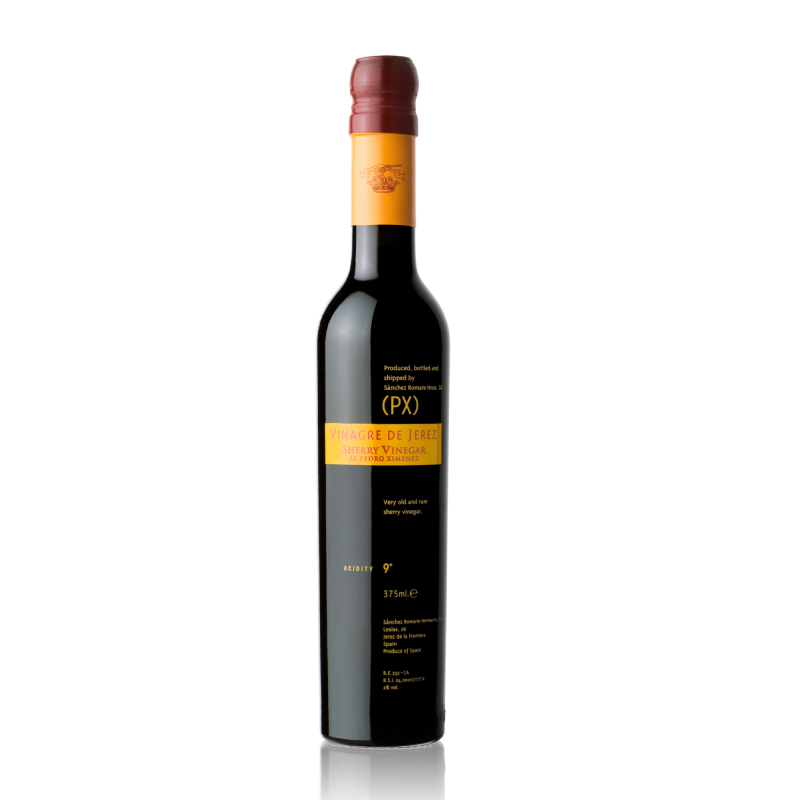 De oscuro color caoba, limpio y radiante, es un vinagre elaborado con las variedades palomino (85%) y pedro ximénez (15%). Tiene un tiempo de crianza mínimo de tres años.
